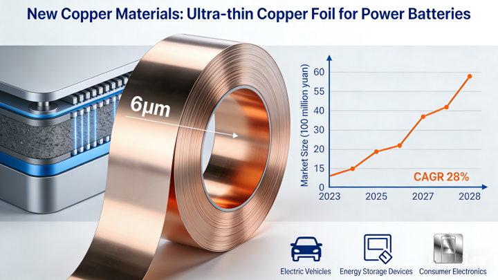 Figura: Recunoașterea noilor materiale de cupru, cum ar fi folie de cupru ultra-subțire pentru bateriile de putere, deschid noi piețe de creștere