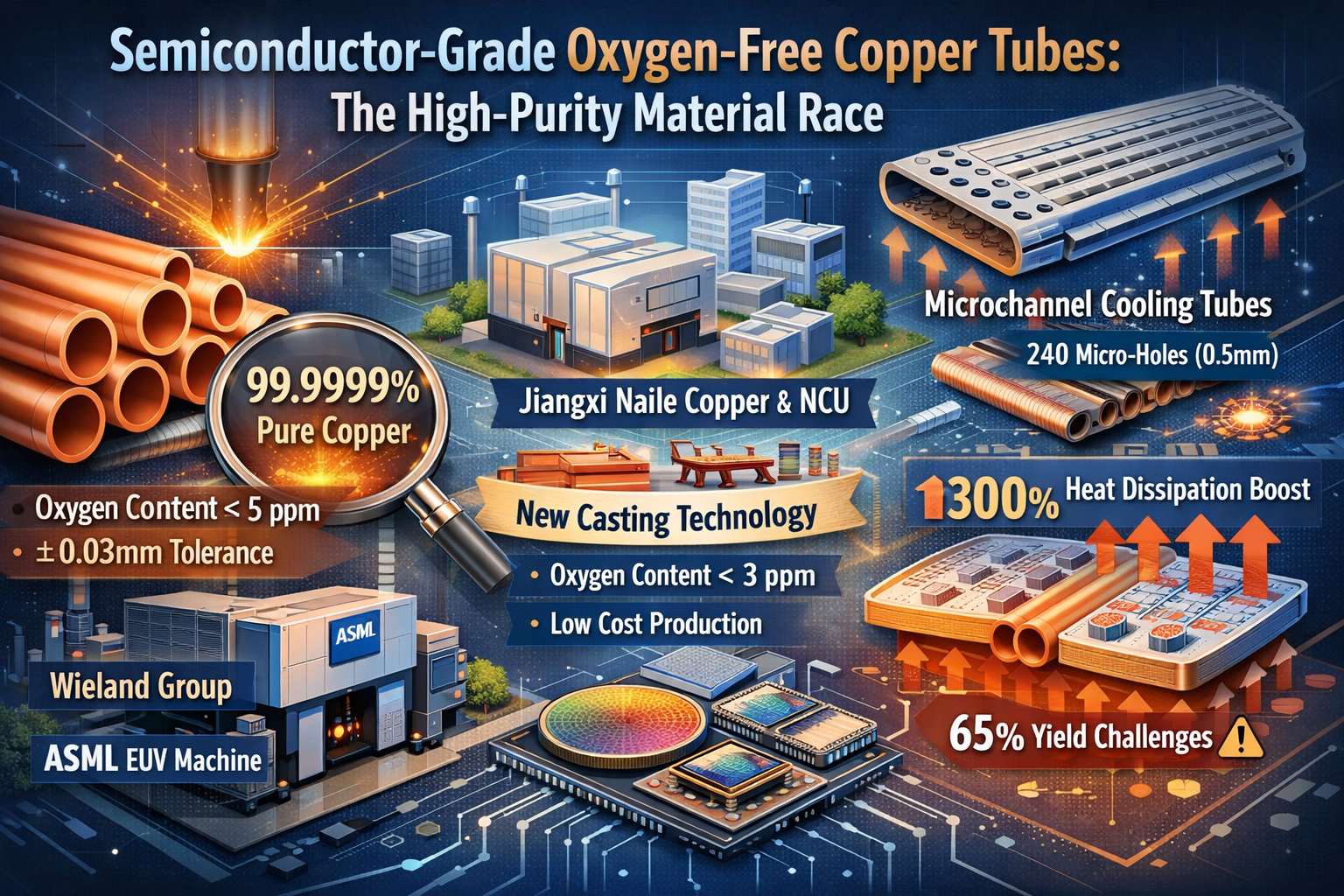 Descoperiri în rentabil apar alternative. Jiangxi Naile Copper, în colaborare cu Universitatea Nanchang, a dezvoltat o „metodă de turnare continuă orizontală cu divizare în oxigen ultra-scăzut” care controlează conținutul de oxigen sub 3 ppm la o optime din costul metodelor de vid importate. Această inovație a intrat în lanțul de aprovizionare pentru liniile de producție de 14 nm ale SMIC. Aplicațiile mai avansate includ tuburi de răcire la nivel de plachetă cu modele de microcanale (de exemplu, 240 de micro-găuri cu diametrul de 0,5 mm) pentru a îmbunătăți eficiența disipării căldurii cu 300%, deși ratele de randament rămân o provocare la 65%.