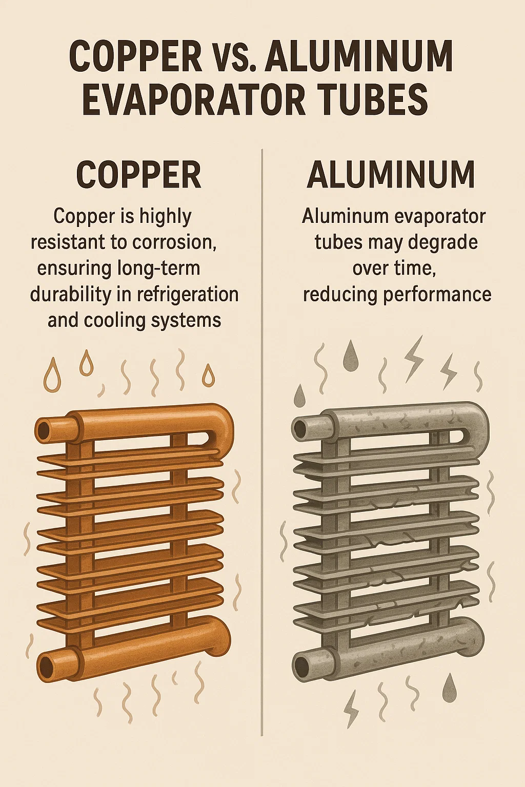 | Caracteristică | Cupru Evaporator Tubes | Aluminiu Evaporator Tubes |