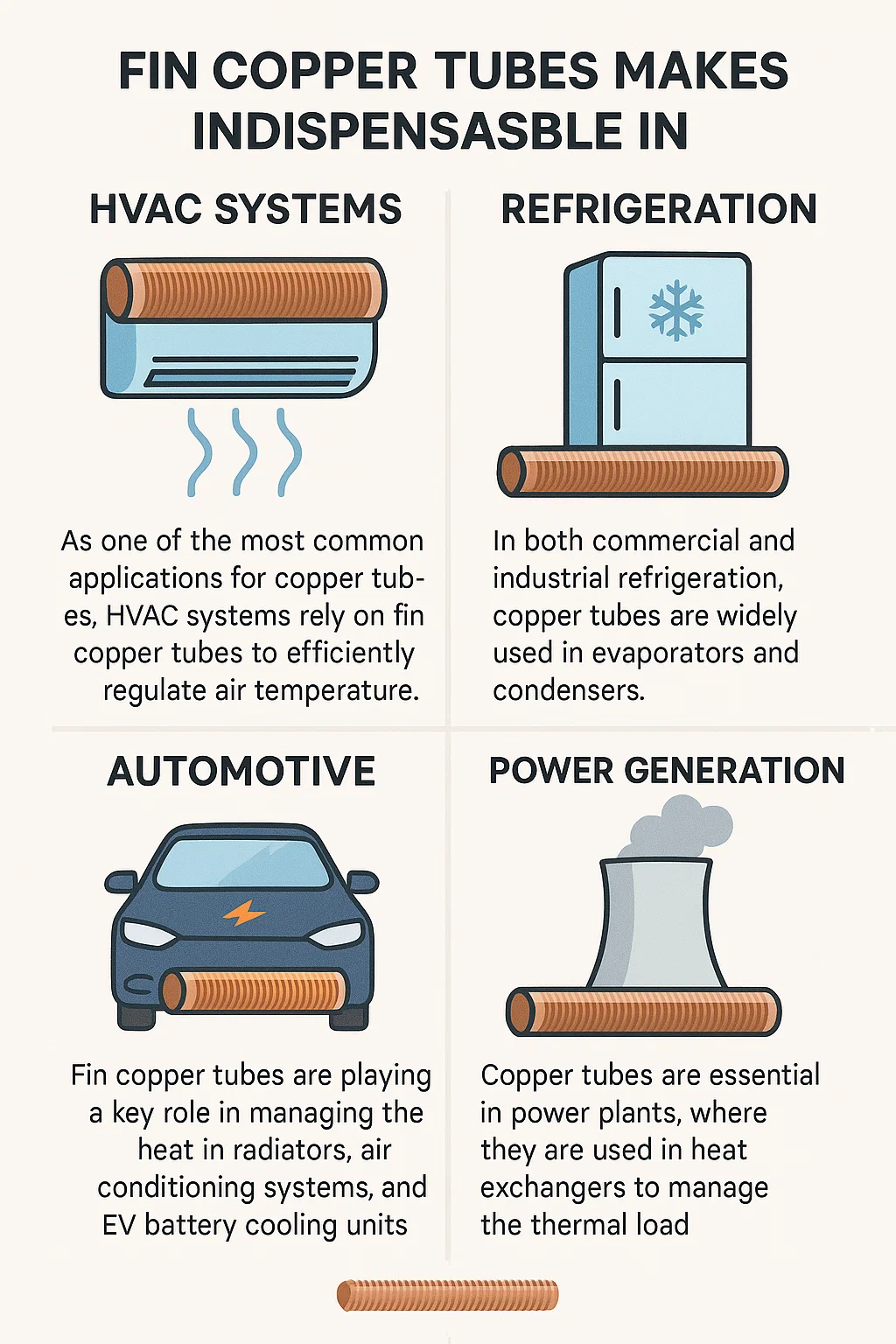 Versatilitatea lui tuburi de cupru cu aripioare le face indispensabile în numeroase industrii, cum ar fi: